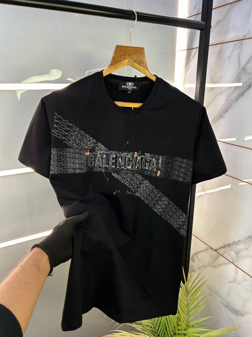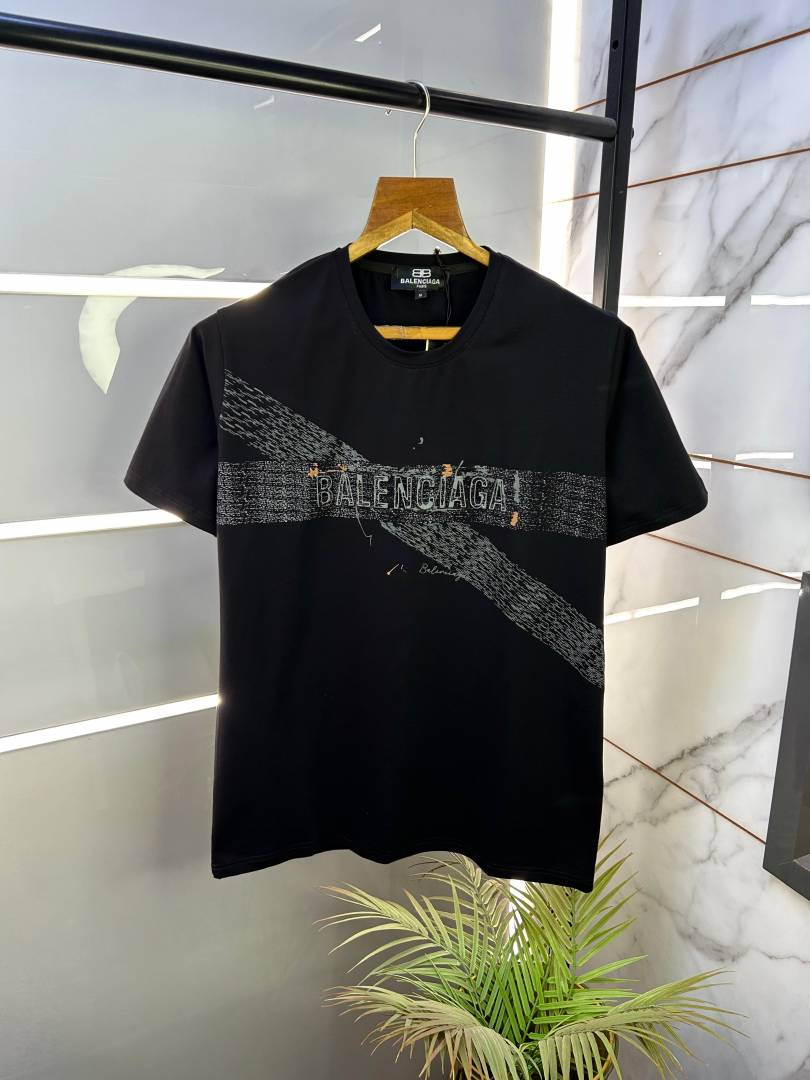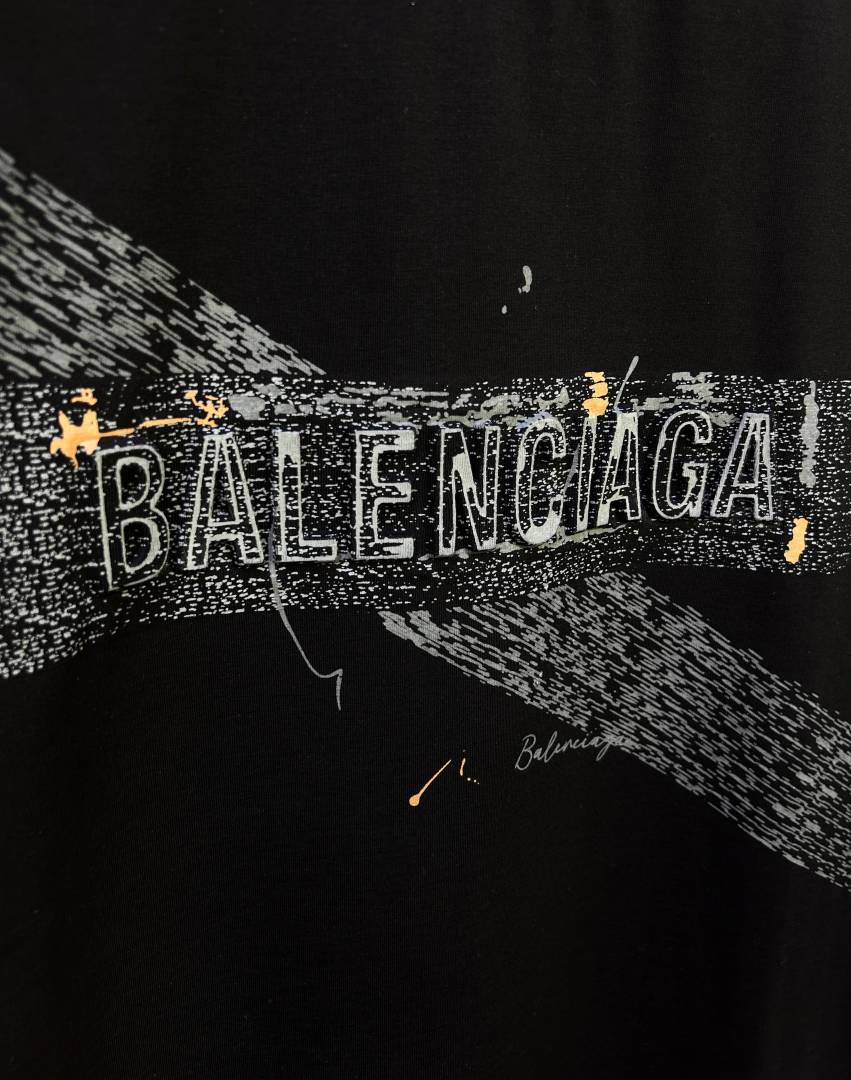 Sale Balenciaga Black Embossed Print Premium Round Neck T-shirt With Carry Bag F2427-BL